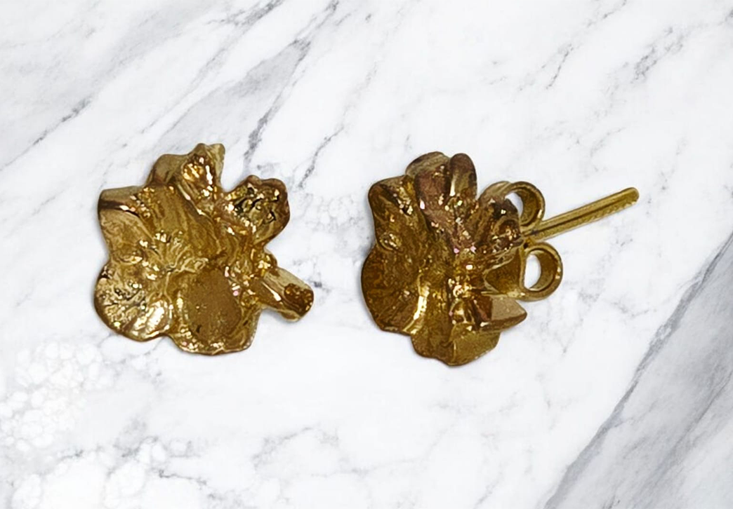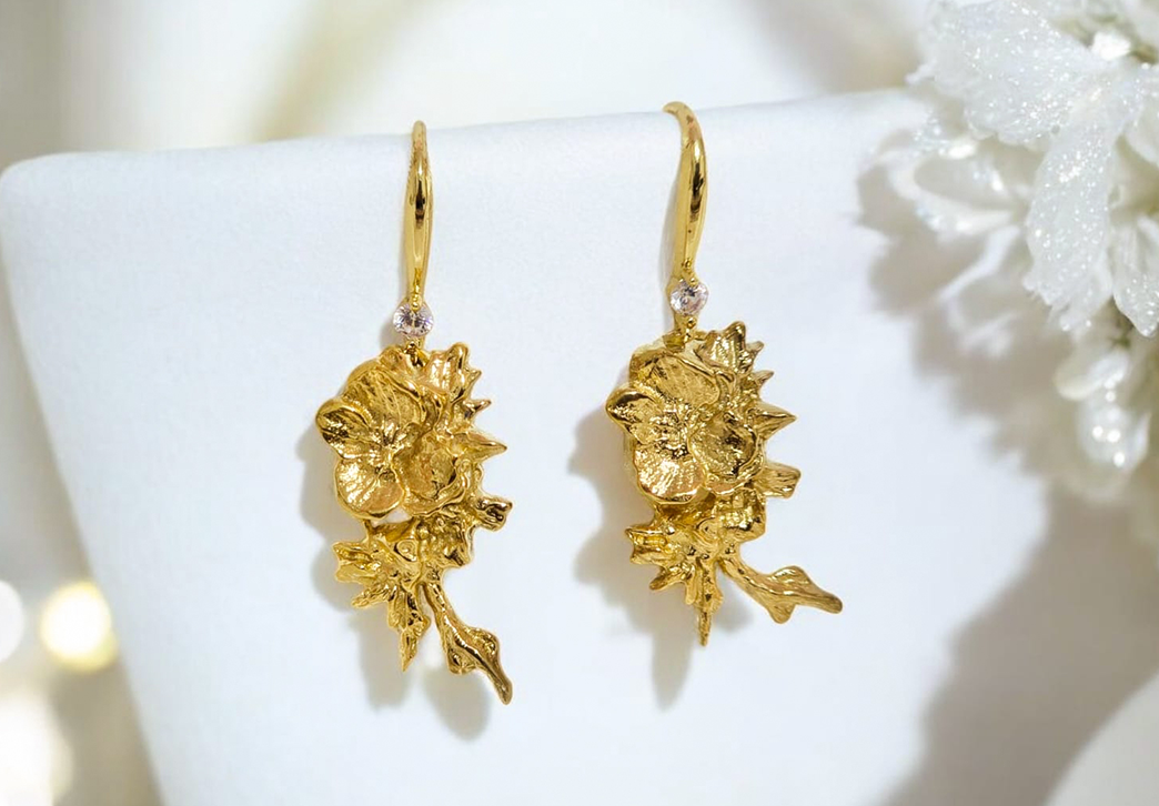 Aretes rinden homenaje a la feminidad clásica, con formas florales inspiradas en la joyería griega antigua.